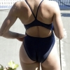 少し湿った髪の毛が顕になり、競泳水着だけの姿になります。